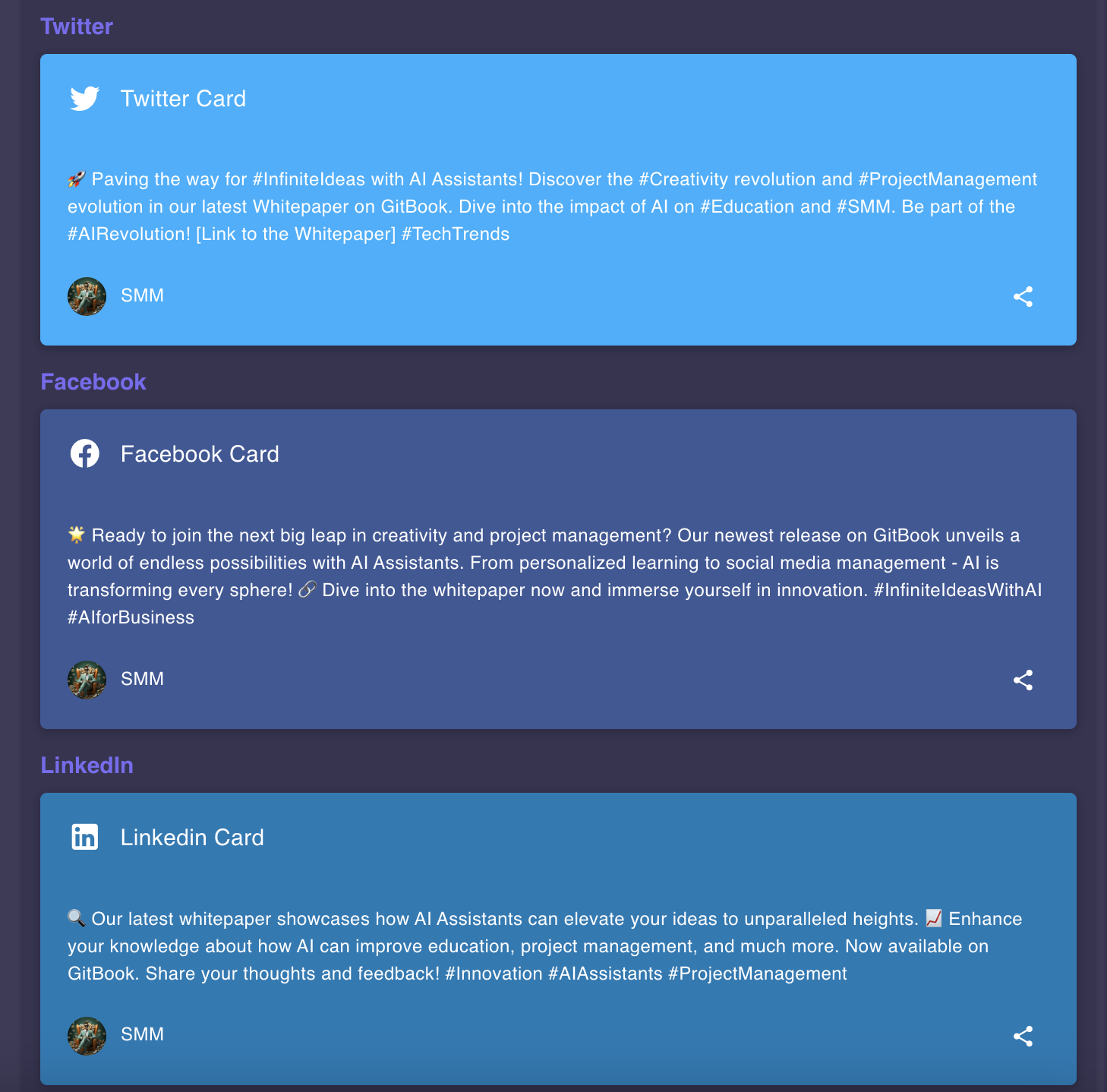 Infinite Ideas offers an innovative approach to social media engagement through AI-generated UI banners tailored for social sharing. The AI system utilizes a rich dataset of design preferences and social media best practices to craft visually compelling banners that resonate with diverse audiences. The banners are designed not just to grab attention but to encourage interaction and sharing, thus amplifying online presence and reach.